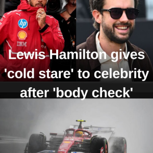 Lewis Hamilton gives ‘cold stare’ to British celebrity after ‘body check’ on Silverstone grid during very awkward run-in