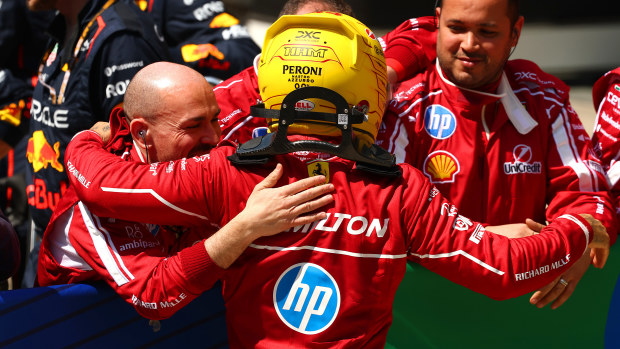 During the post-race press conferences, both drivers played their parts perfectly. Hamilton flashed his trademark smile, calmly telling reporters, “The battle with Charles was one of the most fun I’ve ever had… a wheel-to-wheel fight that was hard but fair.” He praised the team’s relentless hard work and framed the entire weekend as a massive step forward for Maranello.