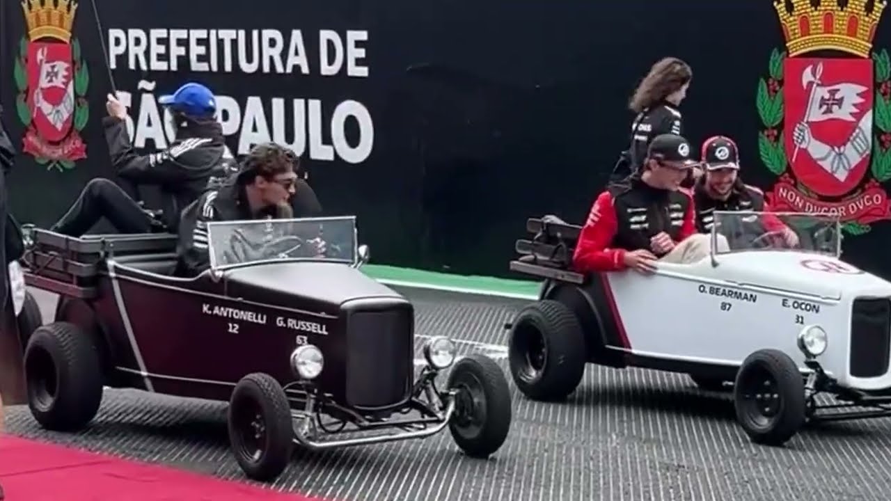 The world of Formula 1 is, by its very nature, a high-stakes arena of precision, million-dollar machinery, and fierce competitive spirit. Every element, from the pit stop choreography to the exactitude of the racing line, is rigidly controlled and calculated. Yet, in a hilarious and profoundly human twist, the high-octane spectacle was momentarily hijacked by pure, unadulterated chaos during the pre-race driver’s parade at the Brazilian Grand Prix. This was not the expected drama of a wheel-to-wheel battle, but a breakdown of the most absurd kind—a spectacle involving miniature vehicles, broken dreams, and the unlikeliest alliance between two of the sport’s most intense rivals, George Russell and Max Verstappen.